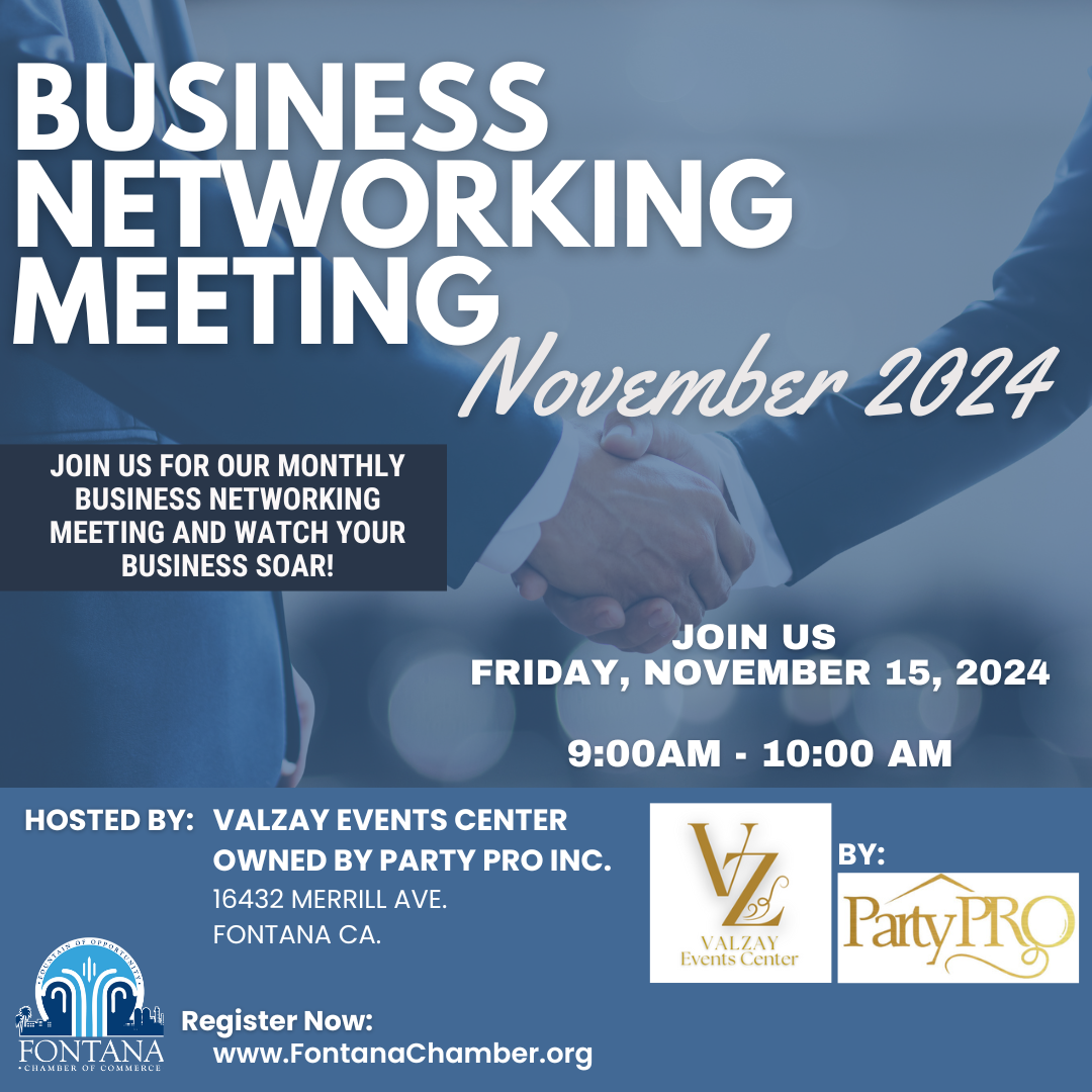 Get ready to network with the local business community at our Monthly Business Networking meeting! Bring those business cards and get ready to make those connections!