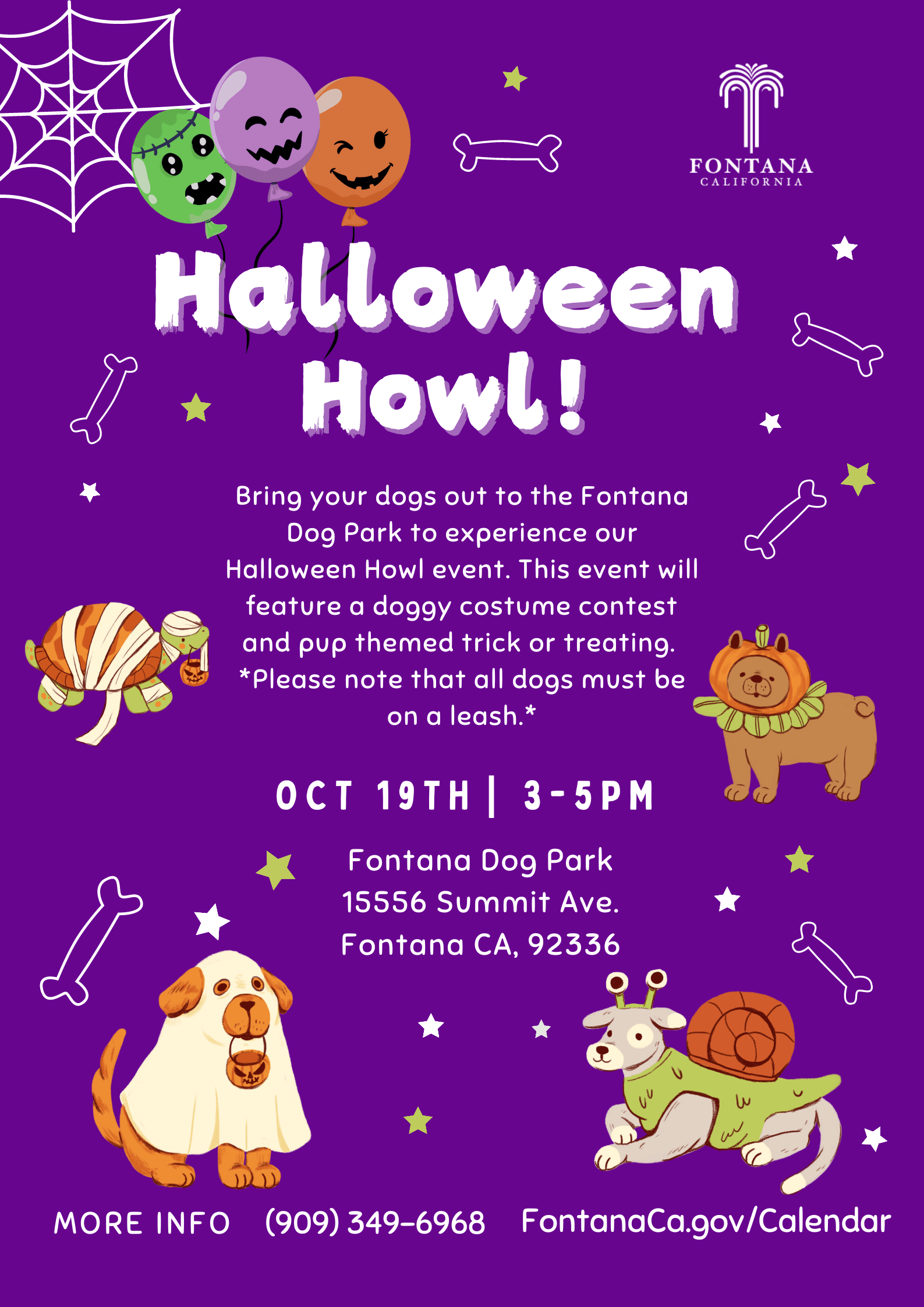 Bring your four-legged friends and Join the Community services dept. and enjoy this free event filed with treats, music and pet costume contest! hosted by the Heritage Neighborhood center at Fontana Dog Park.